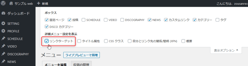 外観→メニュー→カスタムメニューで任意のメニューを追加