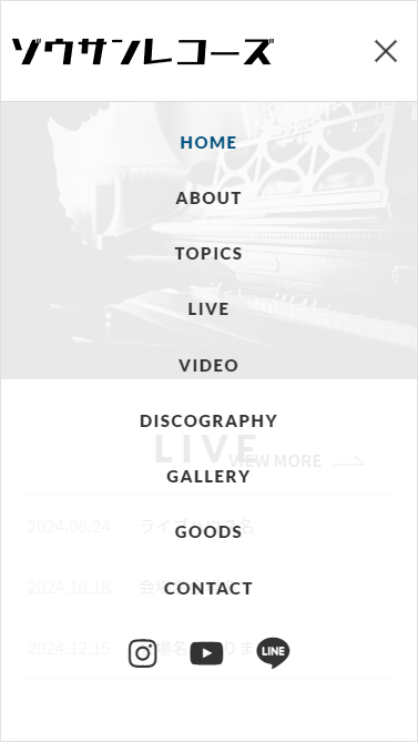 フッター、スマホではメニューを開いたときのメニュー下にも各Sアイコンが表示されます。