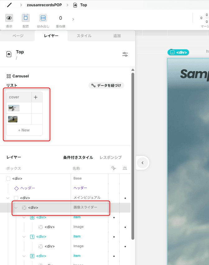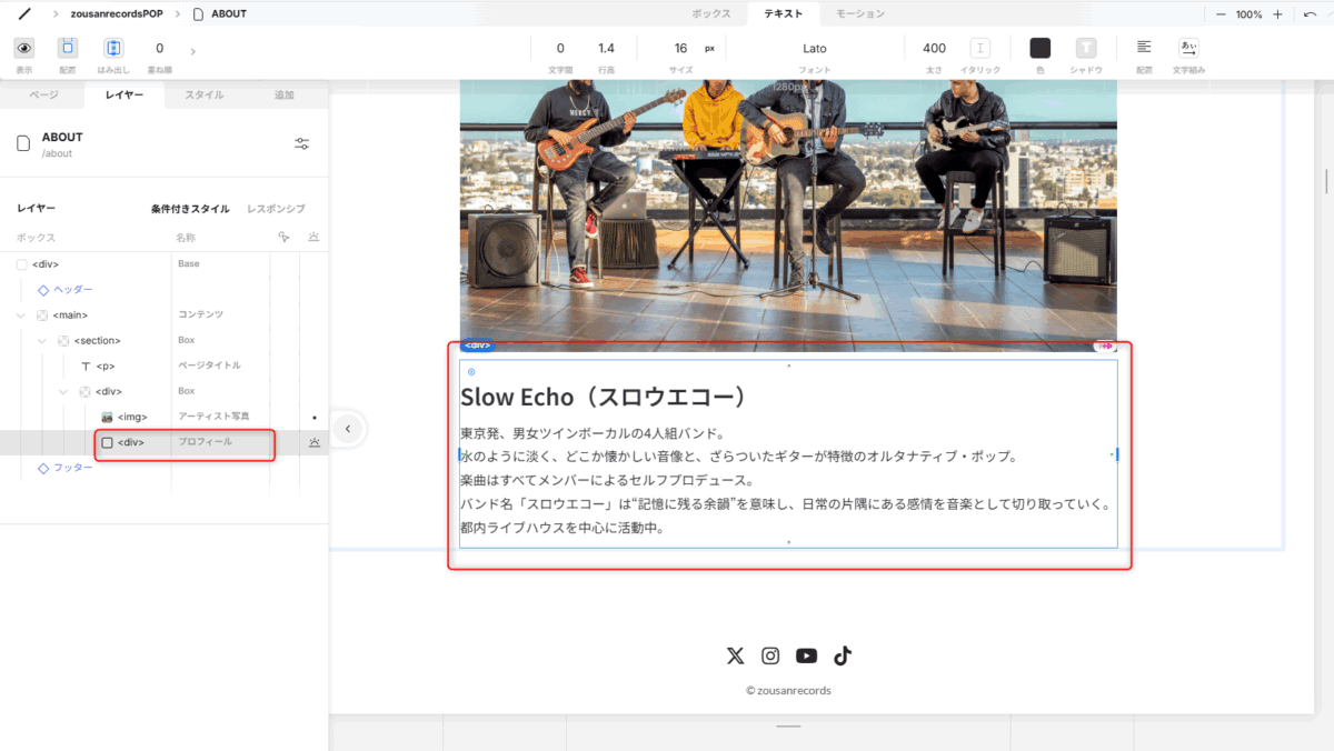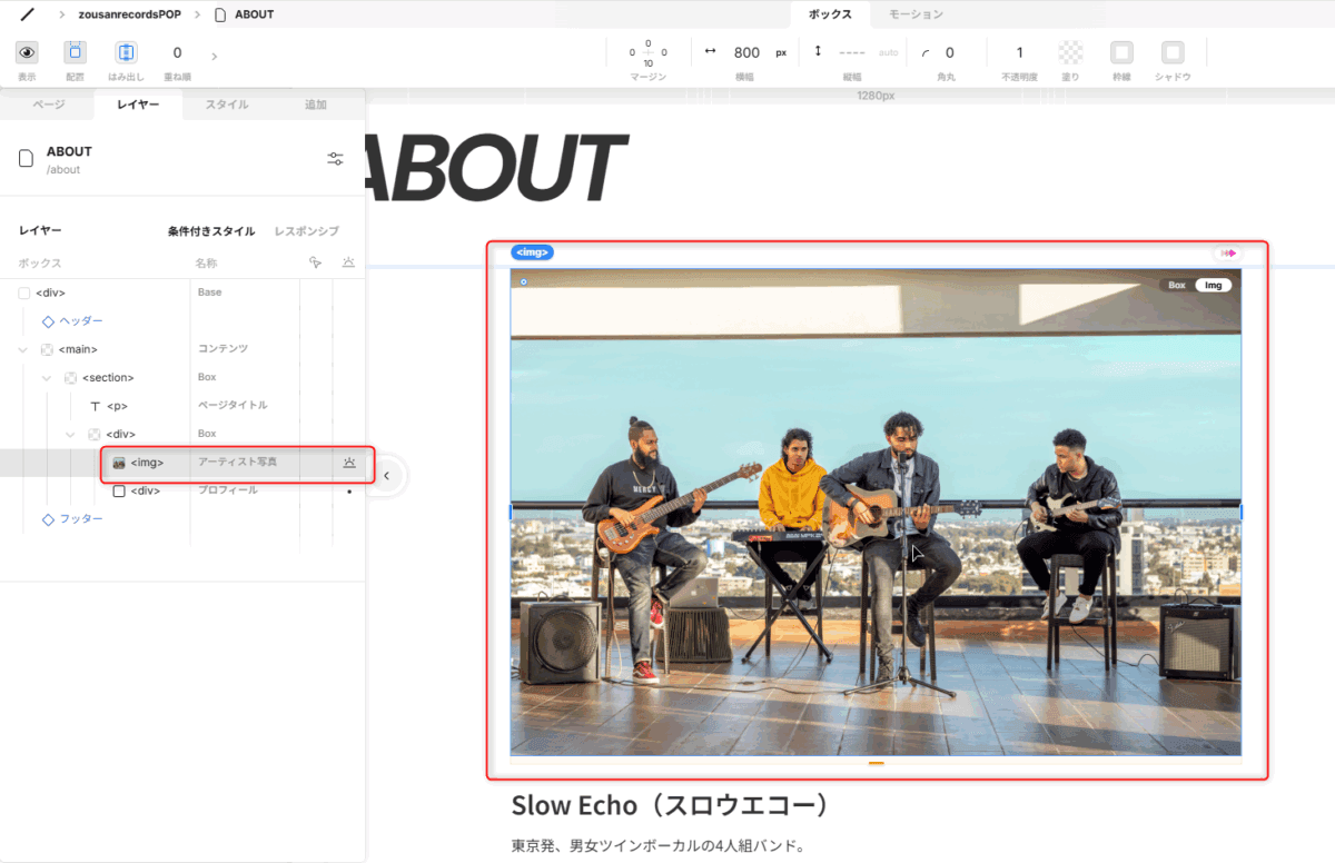 左側メニュー「レイヤー」タブの「アーティスト写真」をクリック画像をダブルクリック。