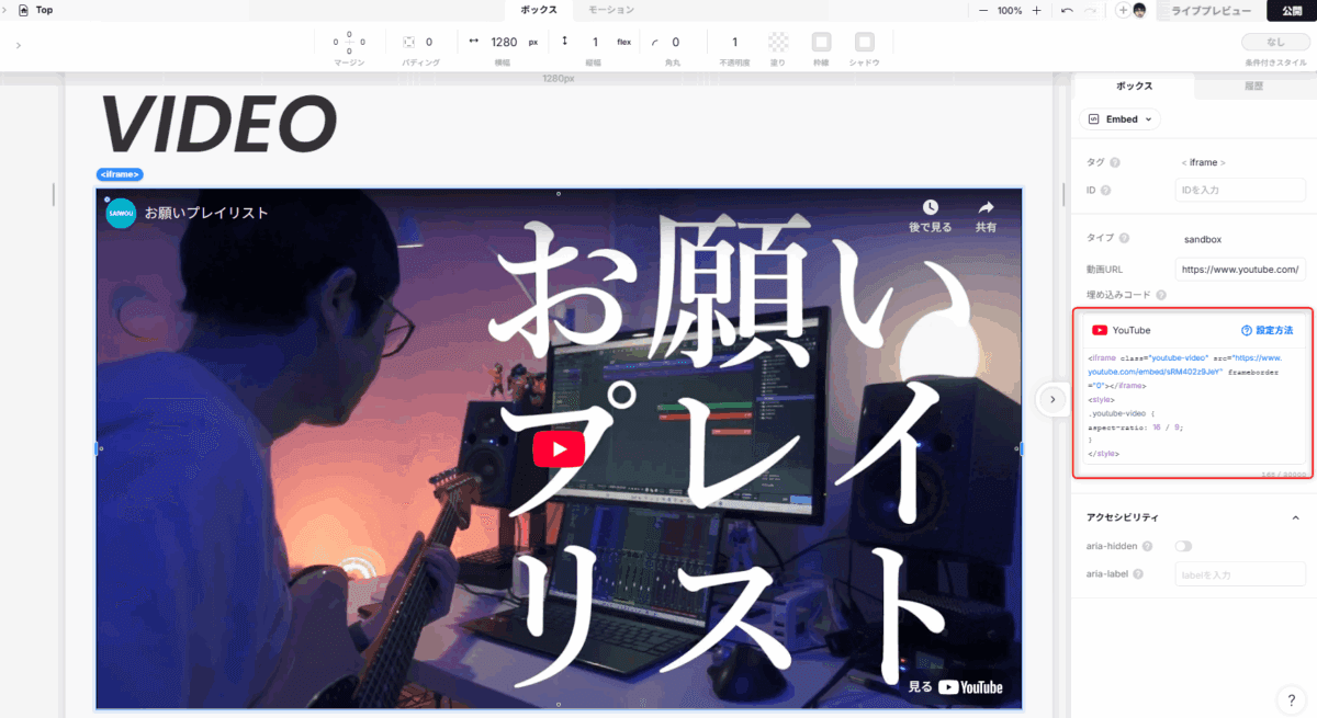 <iframe class=”youtube-video” src=”https://www.youtube.com/embed/◯◯◯◯” frameborder=”0″></iframe>