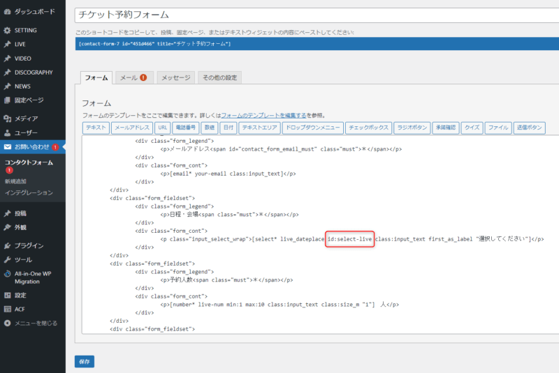 ライブ情報が「SCHEDULE」ページのテーマへアップグレードする場合はチケット予約フォームの設定も変更する必要があります。