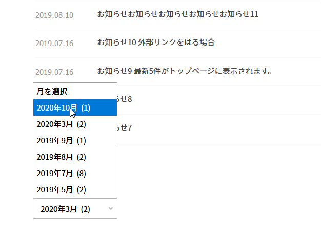 ご要望がありましたのでNewsの月別一覧を表示できるようにしました。