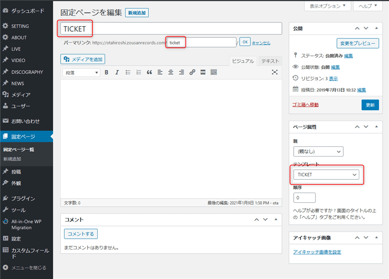 「ライブ予約」ページのタイトルを「TICKET」に変更。